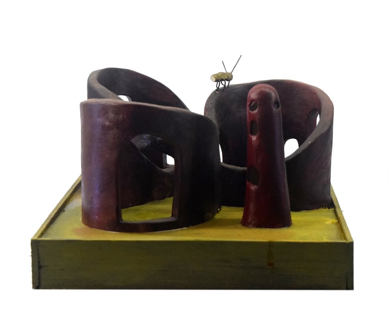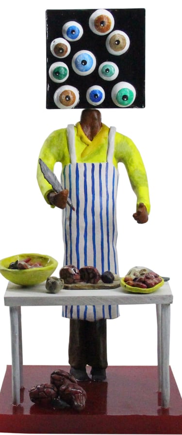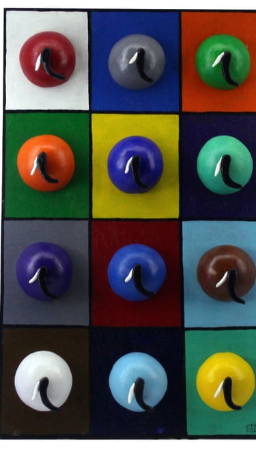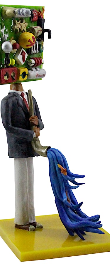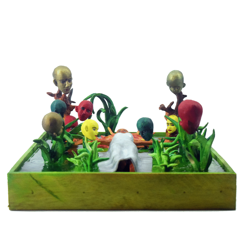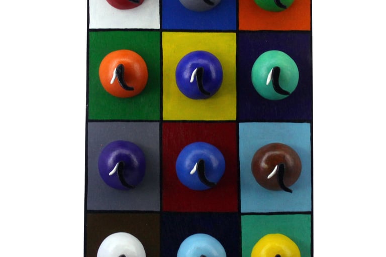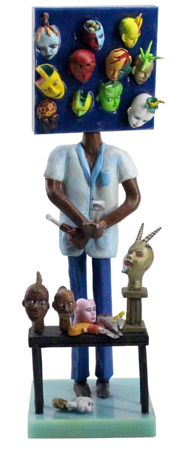 The Ten Heads of the Flawed Genius (Ceramic, Acrylic on Wood)