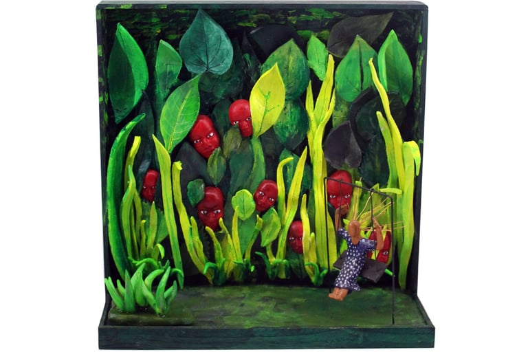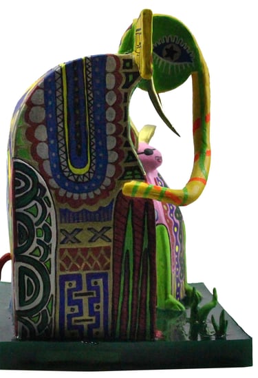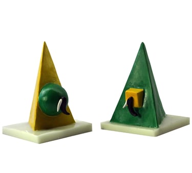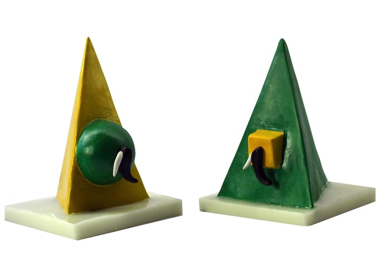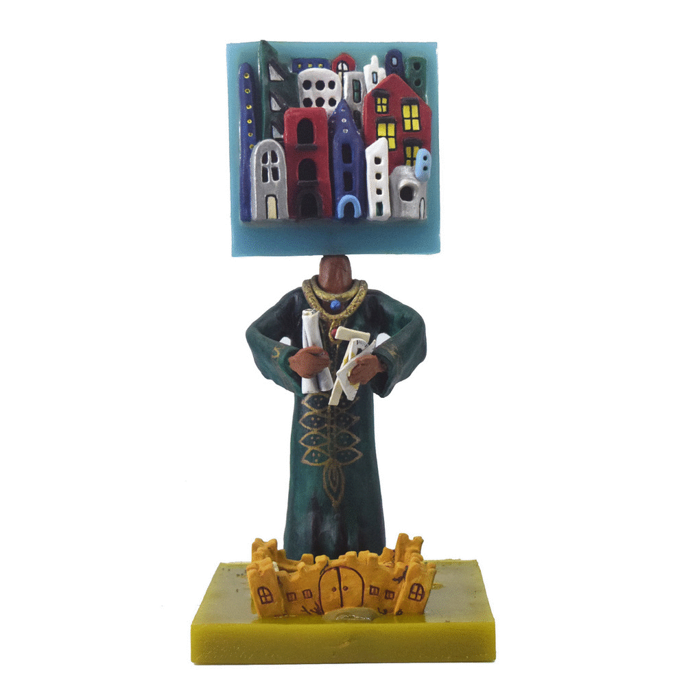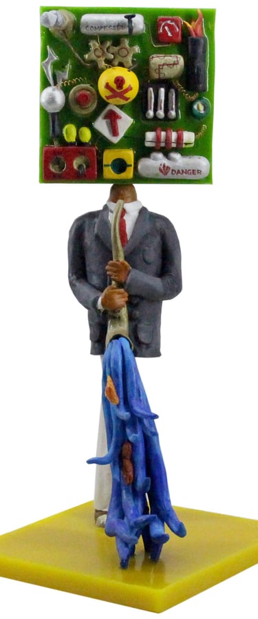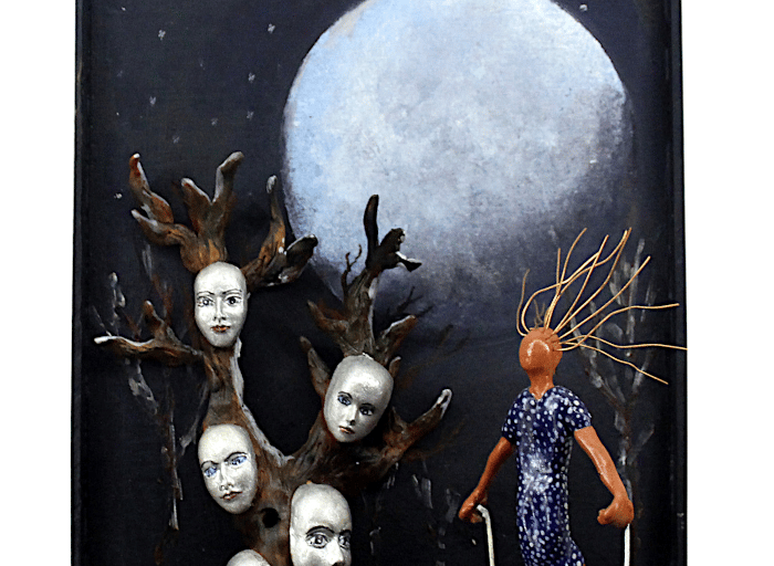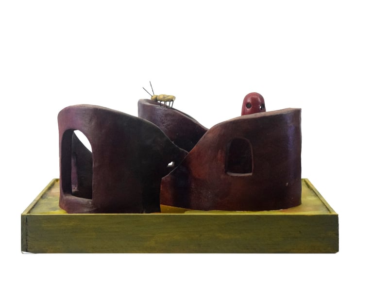 The Ten Heads of the Flawed Genius (Ceramic, Acrylic on Wood)